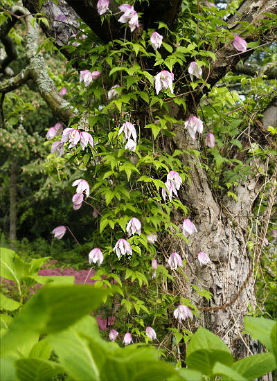 Meine 'Propertius' steht nordostseitig unter Apfelbäumen. Sie wächst an einem 'Herzerlstab' mit 150cm hoch. Normaler Gartenboden mit Hosta, Farne, Epimedium, Rodgersia usw.