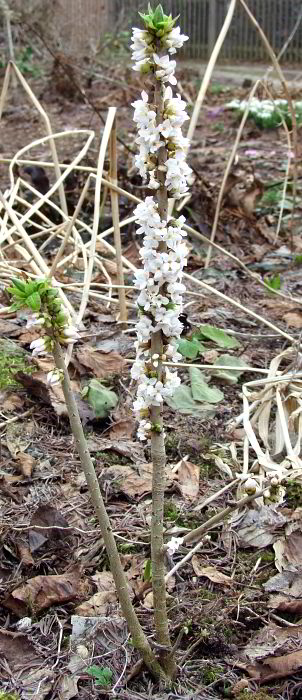 Als ich Anfang 2007 ganz neu hier im Forum war, hab ich im Zuge eines Pflanzentausches von einem lieben Forumsmitglied zwei winzige Sämlinge einer weißen Daphne mezereum geschickt bekommen. Noch stehen sie in Töpfchen, weil ich Angst habe, sie hier im Garten sonst zu verlieren. Aber dieses Jahr blühen sie zum ersten Mal. ich freu mich sehr darüber, blüht hier doch momentan sonst kaum etwas, außer den ganz frühen Zwiebelgewächsen.