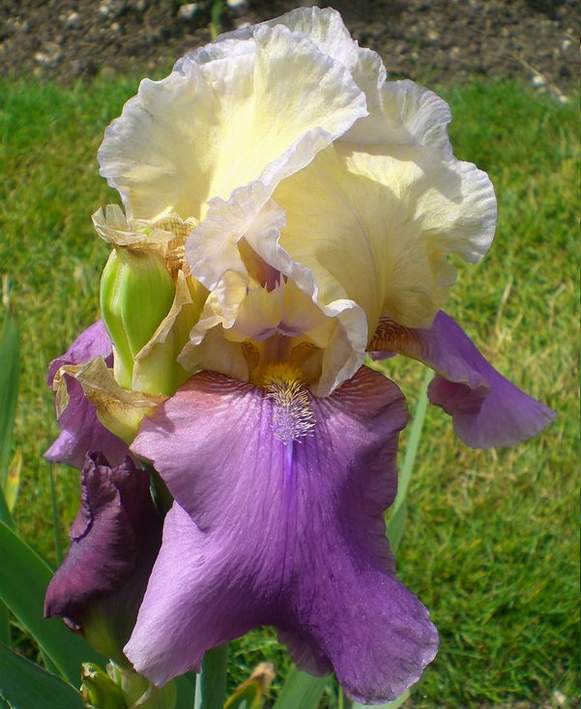 Um die Chapeau mal aus der Diskussion zu nehmenBeschreibung bei AIS:S beige cream; F pink-orchid; orchid beard. 09-4 (Amethyst Flame x L98-1) X Apropos.Hierzu das passende Bild: