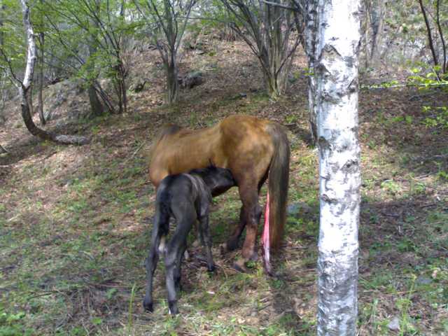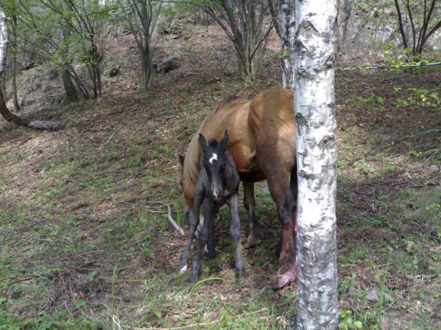 Thogoer, heißt das, dass die Stute das Fohlen ganz alleine zur Welt brachte? Ohne menschlichen Geburtshelfer, wie z.B. bei Kühen? Ja?Am Ort der Geburt war kaum was von Fruchtblase resten zu sehen