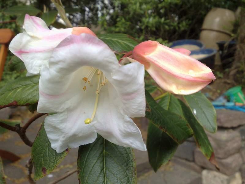 Auch Austriebe können für fehlende Blüten entschädigen: Rh.lacteum Corsock Klon