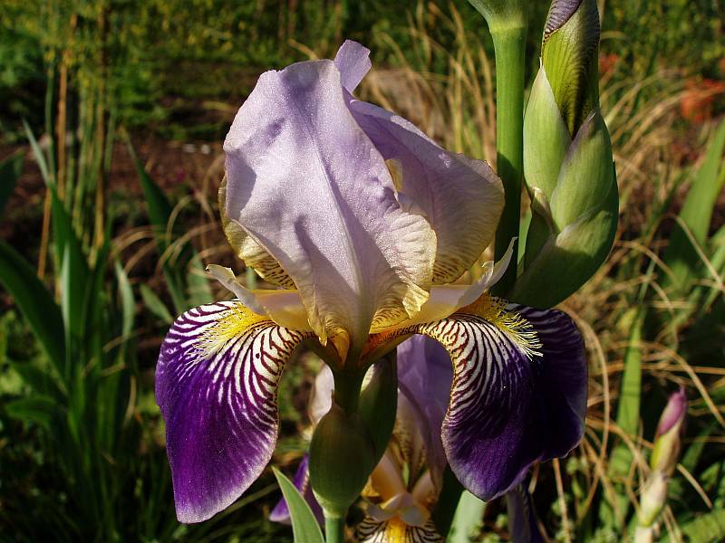 ist eine blauviolette Bitone von Iris x germanica. Ich habe den link zu der Brüglinger Seite jetzt schon mehrfach gesetzt. Titel hier: Fragen um Iris germanica von Dr. Milan Blazek.Ich zeige Euch mal die, die jetzt bei mir blühen (meine Schönlinge blühen ja alle nicht, die sind dieses Jahr alle irgendwie beleidigt) - alles robuste Sorten, von denen ich meistens die namen nicht kenne. Hinweise dazu werden dankend entgegen genommen. ;)eine recht hohe, ca. 80 cm, steht in eher etwas lehmigem Sandboden