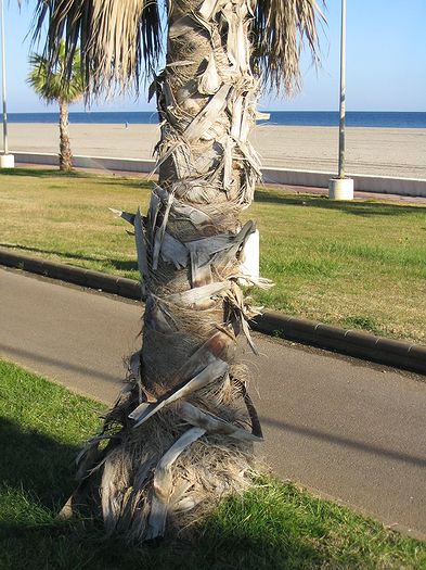 34Auch wenn die Küstenlandschaft langsam zugebaut, zugemüllt wird, muss man doch die Bemühungen der Gemeinden anerkennen, mit denen sie die Uferpromenaden schmücken. Insbesondere beeindruckt dabei das wundervolle Makramee, mit dem dort die Palmen kunstfertig verziert werden.