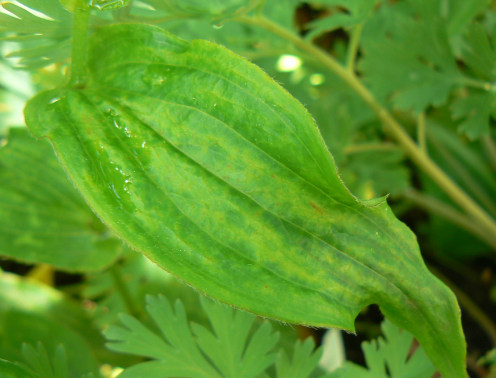 Meine dieses Jahr neu erworbene Tricyrtis kohaku zeigt alle ihre Blätter in diesem Zustand, was mir ganz und gar nicht gefällt. Kann mir jemand Näheres dazu sagen?