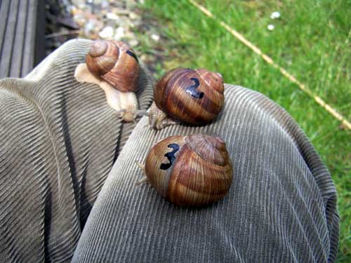 Kürzlich stand in unserer Zeitung dass ein Naturschützer gesagt habe, es gäbe kaum noch Weinbergschnecken. Der hat sie bestimmt nicht in unserem Weinberg gesucht! Dort sind sie nämlich haufenweise, zum Teil 2 Stück an einem Rebstock. Die lassen wir in Ruhe, denn sie verursachen keine erkennbaren Schäden. Gegen die roten im Garten streuen wir auch Schneckenkorn von Neudorff, sonst brauchen wir gar keinen Salat etc. anzubauen. Bei einem Garten von 1000 m² Größe, mit Stauden und Büschen, an 2 Seiten umgeben von städtischen Sträuchern hilft absammeln (wir kommen nur 2x wöchentlich hin, da 15 km Entfernung) nichts und wenn wir alle Beete einzäunen wollten, bräuchten wir sonst nichts zu tun.