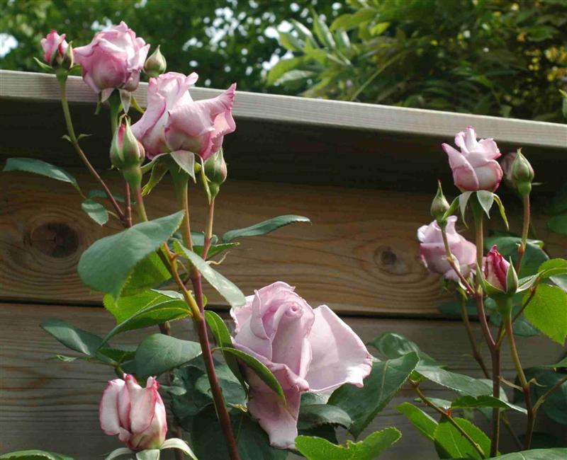 Ja, war erst ne hässliche "Stakse" hinterm Teehäuschen. Hab sie ziemlich (1 Meter) "auf Stock"heruntergesäbelt und die neuen Triebe quer geleitet und nun sieht sie gar nicht schlecht aus