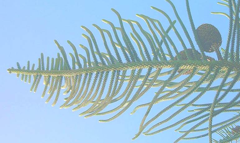 Ich schließe mich mal vorläufig der Meinung von Bernhard an! Irritieren tun mich allerdings die kleinen Zacken an den Blatträndern, die für Araucarien eher untypisch sind.Aber irgendwo kommt mir dieser "Zapfen" bekannt vor, vielleicht fällt mir noch was ein dazu.