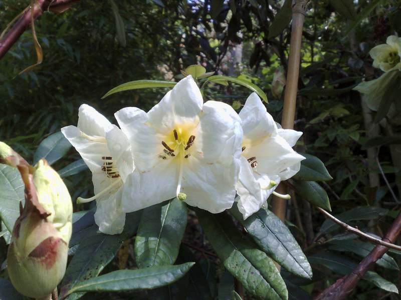 Rh.liliiflorum,zuerst auf der Guizhou-Expedition in den Achtzigern gesammelt ,ist eine große Überraschung bezüglich ihrer Winterhärte.Nachdem Cox berichtete sie sei in Glendoick völlig hart und sie mit H3-H4 bezeichnete,pflanzte ich die 1991 erworbene Pflanze vor drei Jahren auch aus und sie überstand zwischen Bambushorste gepflanzt auch den letzten Winter mit meheren Tagen -9,5 C ohne jeglichen Schaden.Habe deswegen eine weitere Pflanze mit einer anderen Sammlernummer schon reservieren lassen.Die Blüten duften stark und sind wirklich lilienförmig,was mich darüber hinwegtröstet,daß alle Lilien in meinen Garten trotz Schneckenkorn ratzeputze von den Schnecken vertilgt wurden.