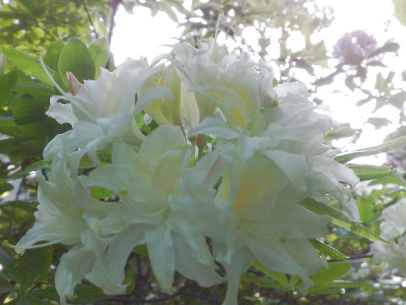 Bitte, bitte! Das sind ja sehr prächtige Burschen - wohl Rh. 'Roseum', die vor allem in Norddeutschland häufigste Sorte. Bei den meisten Rhododendren ist während und auch kurz nach der Blüte noch kein Neutrieb zu sehen, und warum sollte man später noch so genau hinschauen?