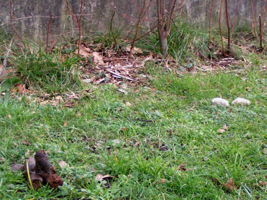 Früher hatte ich nach einschlägigen Erfahrungen Angst vor Hunden. Das hat sich gegeben. Wenn wir uns näher kennenlernen können, kann ich Hunde inzwischen sogar mögen. Nur mit den Hinterlassenschaften von Hunden werde ich mich nie anfreunden können.Wie kann ich meine (freilaufende) Hundenachbarschaft davon abhalten, bestimmte Flächen als bevorzugte Würstchenbude zu benutzen? Hat wer Erfahrung mit vertreibenden Mitteln oder Planzen wie dieser hier?Ich mag gar nicht weiter Rosen für eine Hecke auspflanzen, wenn ich ständig um die Würstchen balancieren muß. Hier ein 20 Minuten altes Foto ...