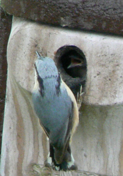 Die Kleiber haben sich einen guten Tag zum Ausfliegen ausgesucht: es regnete und die Katzen zogen es vor, auf ihren jeweiligen trockenen Sesselplätzen zu ruhen.Vorher aber wurde gefüttert wie eh und je