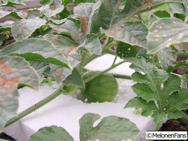 wow schöne kleine Melönchen , aber was ist das auf den Blättern ?? Erde ?