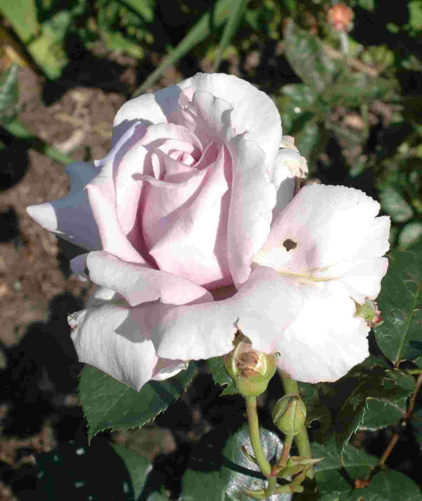Die erste Blüte von 'Neptun, an der Basis angstochen und angeknabbert von irgend einem Käfertier und trotzdem hat sie sich entschlossen aufzublühen