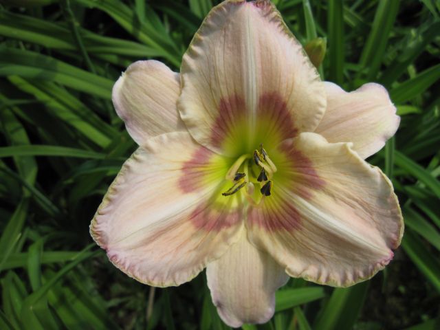 Also, ich bin prinzipiell kein Hemo-Gutfinder, am schlimmsten finde ich den Typus "aufgeplatztes Sofakissen", einen Ausdruck, den ich bei einer Gartenfreundin geklaut habe - und dann noch Büten die sich kaum über das Laub erheben - furchtbar.Ich habe auch ein wenig mit H. altissima gekreuzt und vermute, dass meine Muttersorte (H. altissima, vor vielen Jahren bei Piet Oudolf erworben) nicht einmal echt ist. Aber immerhin brachte sie Blüten hoch über dem Laub, natürlich ungerüscht. Im Endeffekt habe ich nur eine behalten, eine minimale Verbesserung zu H. altissima: weiter geöffnete Blüten und der Duft ist deutlich besser. Aber absolut nicht spektakulär. Ich denke, man müsste einen langen Atem haben um hier wirkliche Verbesserungen zu erzielen. Coen Jansen hat auch einmal in einem seiner Kataloge geschrieben, das er diesbezügliche Versuche unternommen hat - ohne durchschlagenden Erfolg.Also die F1 Generation bringt es nicht wirklich und für mehr fehlt mir das Hemo-Gen.