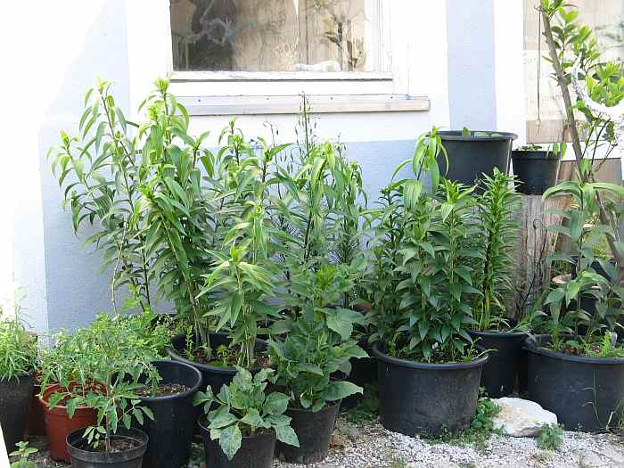 Hier ist der Großteil meines Anteils. Die L.pumilum sind bei mir auf dem Balkon und die tigrinum stehen abseits wegen der virusbelastung.Hab gerade gesehen die cernuum sollten nur 50 cm hoch werden. Hab sie aber alle gut gefüttert mit Rhododünger. Die Erde war gemischt aus 3t TKS 1 Teil Maulwurfserde lehmig 1 Teil Fichtenrohhumus 1 Teil feiner Kies und Sand. Den Topfboden hab ich mit Rindenmulch ausgelegt.
