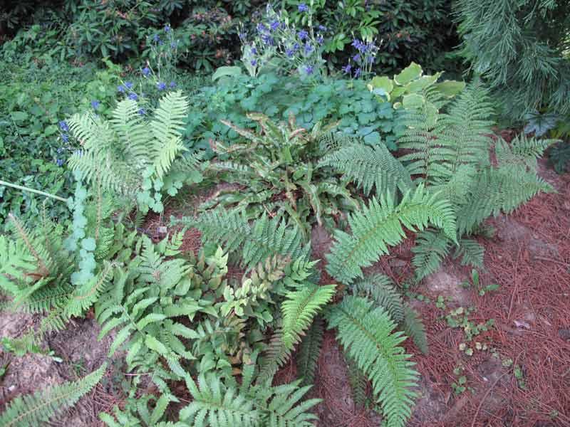 Polypodium vulgareSteht bei mir schattig und feucht.