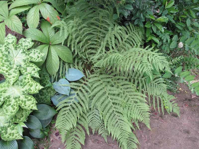 @Nina, die Farne baruchen noch etwas, dann aber wird Dein Farntal schön.Hier sind meine Adiantums. Links Adiantum aleuticum ´Japonicum´ rechts Adiantum pedatum. Links hinter der Hosta ´Blue Angel´ treibt der Rotschleierafrn Dryopteris erythrosora aus. Ganz links vorne Athyrium niponicum ´Metallicum´.Das zweite Exemplar meines Polystichum pulcherrimum ´Bevis´Polystichum polyblepharum, der japanische Glanzschildfarn sieht wirklich wie lackiert aus, daneben die ebenso lackierte Hosta ´Devon Green´.