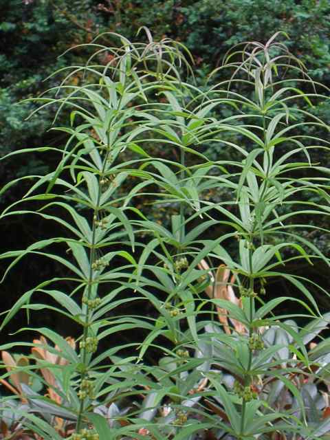 Schon einmal gezeigt, aber jetzt ausgewachsen mannshoch: Polygonatum verticillatum 'Himalayan Giant'. Die Pflanze steht unter einem Rhododendron und schiebt jedes Jahr einen Stengel mehr:
