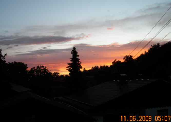 Bewölkt bei 14°. In der Früh gab es ein schönes Morgenrot......... Vielleicht hält der Föhn die Front aus dem Westen noch ein paar Stunden zurück, dann kann die alljährliche Fronleichnamsprozession auf den Salzkammergutseen abgehalten werden.
