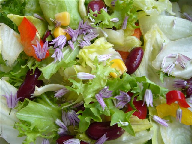Luna, was sind denn das für lila Blüten? Schnittlauch oder sowas? Kommen die in den Salat?