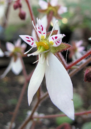 Bei Saxifraga stolonifera "Kinki Purple", muss man schon genau hinsehen.