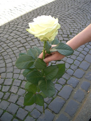 der star des tages beim besuch des amerikanischen präsidenten in der gedenkstätte buchenwald war diese rose, die meine floristenfreundin für ihn ausgesucht hat. nach auskunft ihres großhändlers eine "avalanche" - hier extra und exklusiv für unser forum gehalten von der floristin höchstselbst!