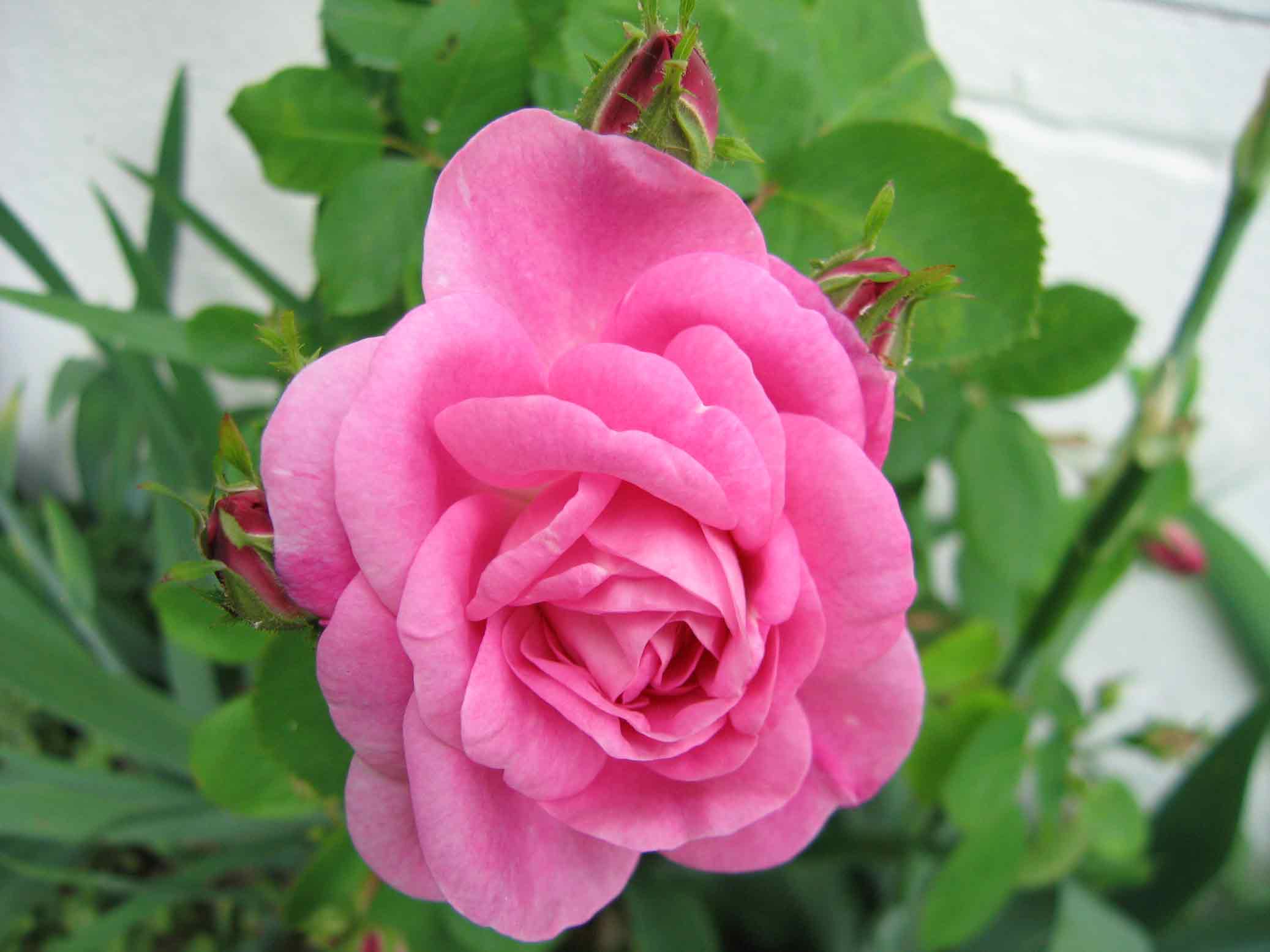 Kletterrosen sind bei mir ein heikles Thema. New Dawn hat es nicht geschafft, und nach dem letzten Winter mußte ich mich auch von meiner schönen Leverkusen verabschieden. Beales gesteht ihr Zone 4 zu, das muß leider korrigiert werden. Nun ja, die nackten Drähte wollten bewachsen werden, so habe ich auf Anraten eines Forummitglieds die Nordlandrose zur Kletterrose umfunktioniert. Und was ich zunächst als Notlösung betrachtet habe, entpuppt sich als Volltreffer: Im dritten Jahr nähert sie sich dem Dach, kein Zentimeter ist erfroren. Das Laub gesund und üppig, die Blüten wunderschön - im Aufblühen kräftig rosa, später zarter. Und vor allem: sie wird geführt als schwach bis nicht duftend, was überhaupt nicht stimmt - wunderbarer Alte-Rosen-Duft. Er strömt durch die geöfneten Fenster ins Haus, damit habe ich am wenigsten gerechnet. Das ist erst der Anfang, das Bild ist vom Wochenende