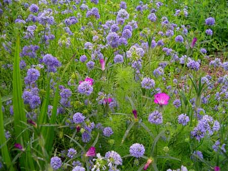 Die folgende Pflanze ist einjährig und stammt aus einer Aussaatmischung "blauer Garten" vom Vorjahr. Die Saat der einzigen Vorjahrespflanze habe ich weiträumig in der Umgebung verteilt und war so erstaunt wie froh daß trotz des harten Winters in diesem Jahr gleich mehrere Kinder davon gekeimt sind.Fast jeder Besucher fragt nach ihrem Namen und mir ist diese (einzige!) Wissenslücke in diesem Beet (zumindest in Bezug auf Stauden und Einjährige, von den Wildrosen dahinter sind einige immer noch nicht eindeutig identifiziert