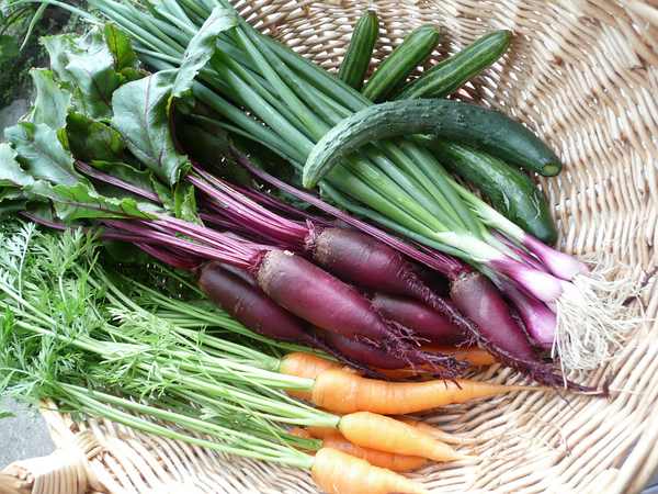 Hier ist mein Erntebild vom letzten Mittwoch, hatte in der Zwischenzeit mit der Verarbeitung zu tun, es kamen noch Sauerkirschen dazu. Außerdem gab es noch Schnittsalat und Romanasalatherzen. Kräuter sowieso jeden Tag, für Tee: Zitronenmelisse, Minze, Malve, Zitronenverbene, Jiaogulan, Stevia, mex. Süßkraut, Mutterkraut, Johanniskraut. Inzwischen stehen schon wieder Himbeeren da.