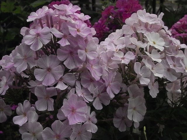 und der dritte lilarosa. Keiner ist so blass wie Phlox paniculata-Sämlinge oft sein sollen.Alle sind auf trockenem Sandboden viel höher als paniculata, bis ca. 1,50 m.