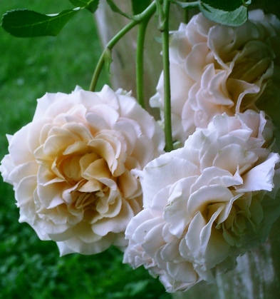 Mal nicht die Clematis, sondern die Rose Marjorie Marshall. Ganz zart von dunkel-apricose ins cremefarbene.