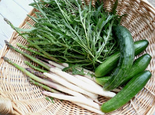 Naja, nüscht dazu das Gemüse zu Lasten der Rosen zu retten. Räusper. Heute gab es Erdbeeren, Salat und Himbeeren.