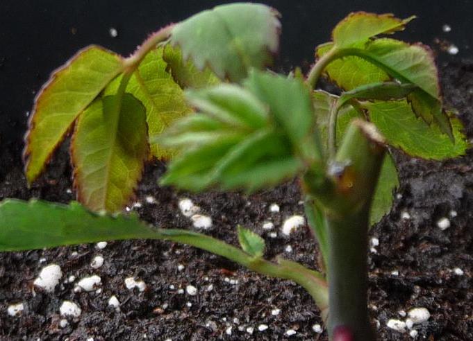 Der sieht gesund und wuchsfreudig aus. Lasse ihn noch stehen bis der neugebildete Trieb das dritte bis vierte Blatt hat. Steht er alleine kannst Du leicht mit Flüssigdånger Nähstoffe zufügen. Ist er mit mehreren zusammen, nach der Blattfolge wie Deine Sämlinge aufnehmen und neu topfen.Hast Du ein Stecklingspulver verwendet um die Kallusbildung zu fördern?Das würde ich gerne wissen, da ich zwar viele Stecklinge in meinem Leben schonn gemacht habe, aber keine Rose.Schaut mal, Stecklingsversuch von Rêve apricot, ist das schon erfolgversprechend? Oder soll ich mich mal nicht zu früh freuen? Habe vorhin gelüftet und die Plastiktüte abgenommen und war erfreut über die vielen kleinen neuen Blätter, das links unten ist das alte, das ich drangelassen hatte.