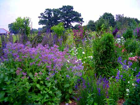 Nun geht´s um die Ecke und zur Linken liegt die Nordreihe.Dort wachsen (hinter, zwischen und unter den arg üppigen Stauden und Einjährigen