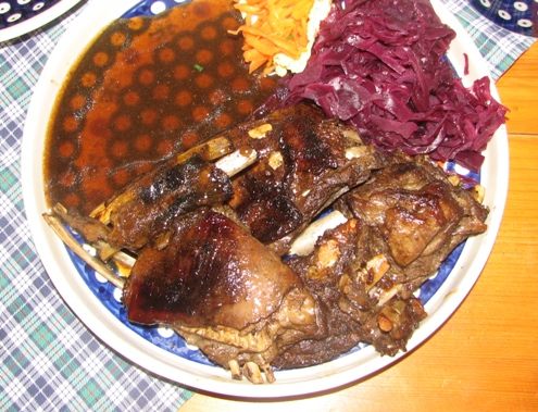...und abends wurden mit rippchen vom wild geschlemmt (salatteller als vorspeise und kartoffelbeilage fehlen im bild
