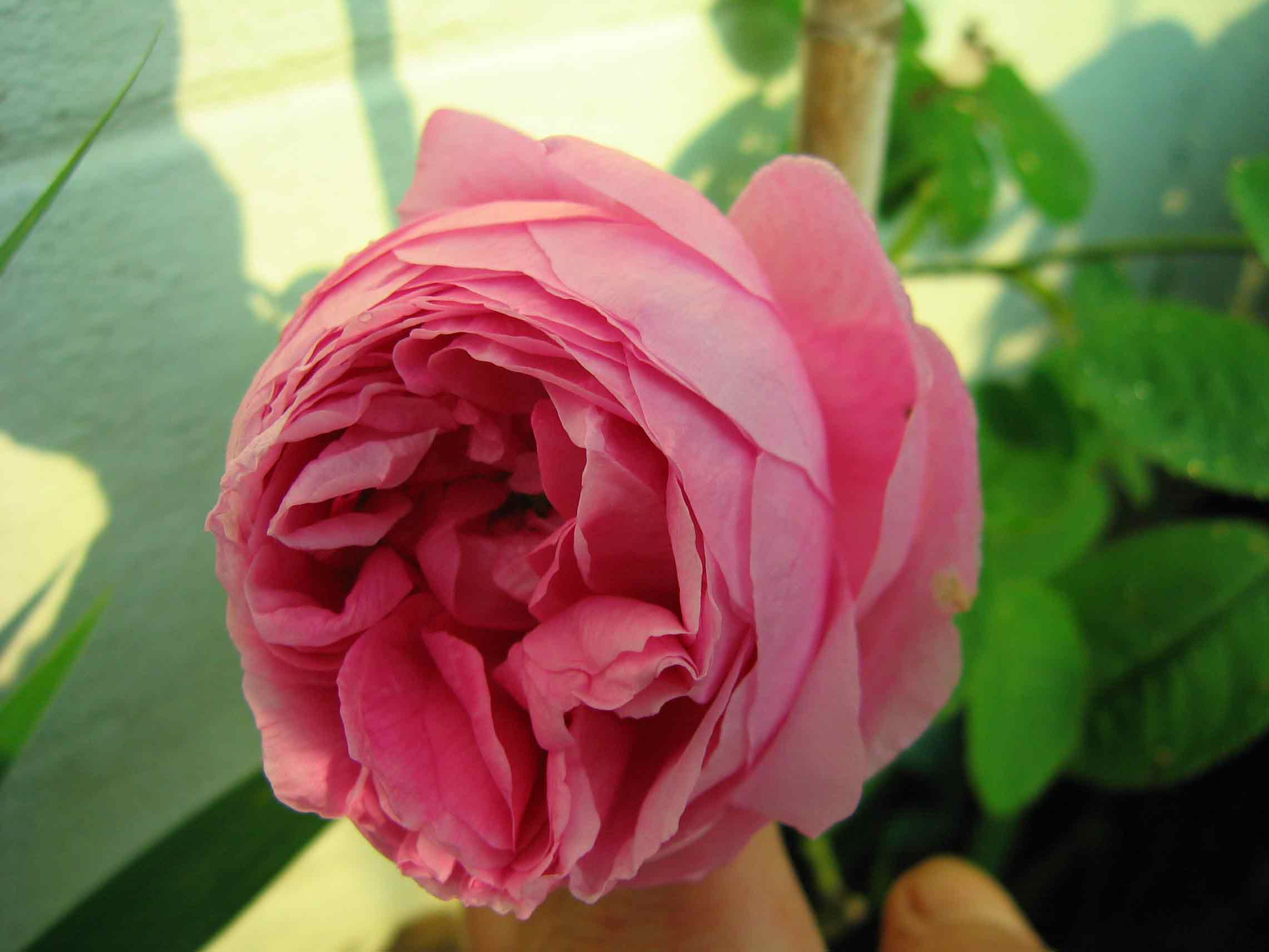 Der kleine Ausläufer der Zentifolie von Lisl, letztes Jahr gepflanzt, hatte 3 (!) Blüten auf dünnem Stengelchen