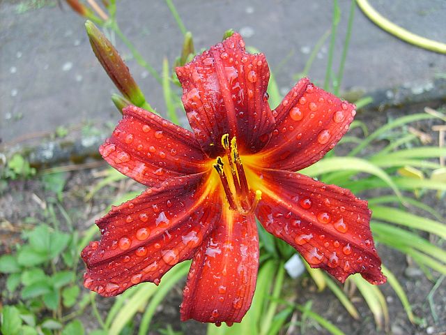 Nach der zarten Rosa jetzt ein antiker oranger Farbknaller: Fife and Drum (Wynne 1965).Das Auge ist dunkler als auf dem Foto. Umwerfender Kontrast, leider von der Form ein bißchen wie eine Trompetenlilie.