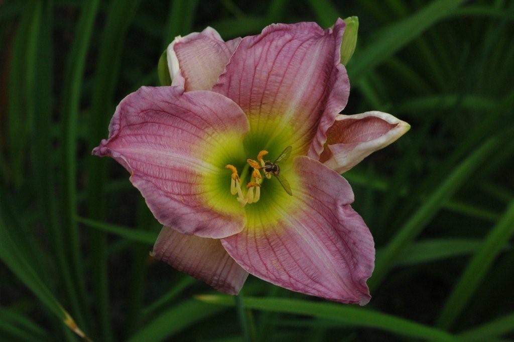 . Bei den Eltern ein Glücksergebnis , mein Ziel war eine duftende Hem mit Spidergenen . Das soll natürlich einen duftenden Spider in der nächsten Generation ergeben , als Zwischenstop ist die sehr nett : duftend und mit grünem Schlund . Anfängerglück ;DDie Schwebfliege hat noch beim Ablichten angefangen den Pollen zu fressen