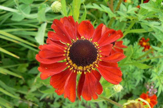 Blüht er bei Dir immer so früh. Hier ist von den Heleniums erst "Sahins Early Flowerer" vasentauglich. Der Rest zeigt noch keine Farbe. Lysimachia ciliata leuchtet als kleines Sternenmeer im dunklen Hintergrund der Rabatte. Er ist zwischen Phlox und Winterastern sicher eingeknastet, benimmt sich auch sonst ganz moderat - noch.Und das leuchtete mir heute auch entgegen.