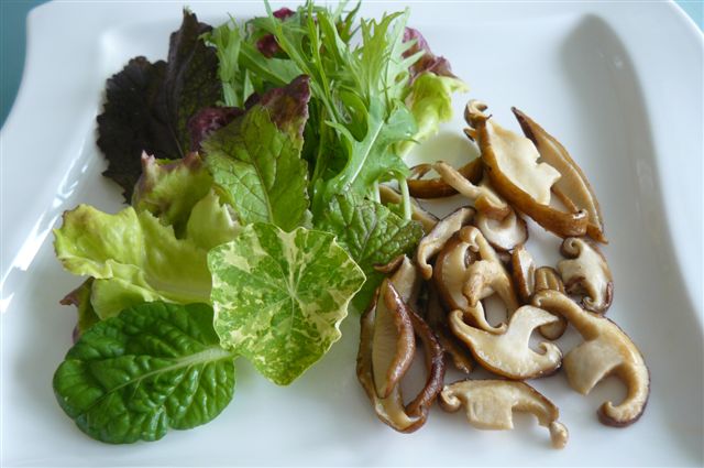erst gab es die letzten Shiitake Pilze mit Gartensalat