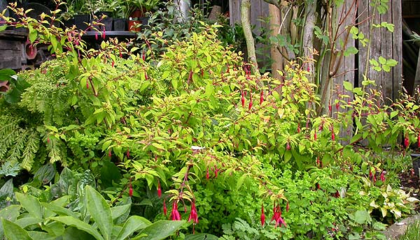 Ich bin erstaunt, wie gut die winterharten Fuchsien den Winter überstanden haben. F. mag. Aurea bedeckt jetzt fast einen m²...