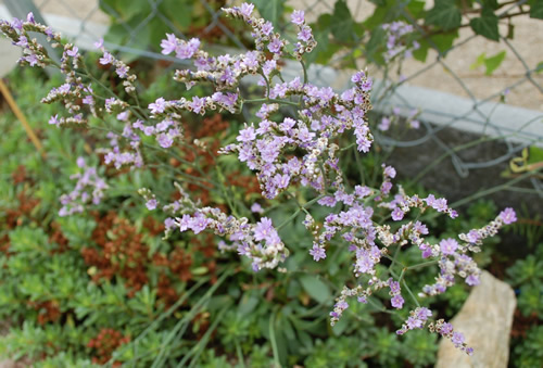 Das langblättrige Hasenohr hat wieder ausgetrieben, wo ich es letztes Jahr gepflanzt habe.Das rundblättrige Hasenohr verschwindet manchmal für zwei Jahre und kommt dann wieder irgendwo in der Nähe hervor.Wobei ich beide noch nie in der freien Natur gesehen habe.Dieser Meerlavendel ist so zierlich, er steht ebenfalls seit 4 Jahren hier, sehr trocken und mit sehr wenig Platz, ist immer ein echter Hingucker beim Vorbeigehen: