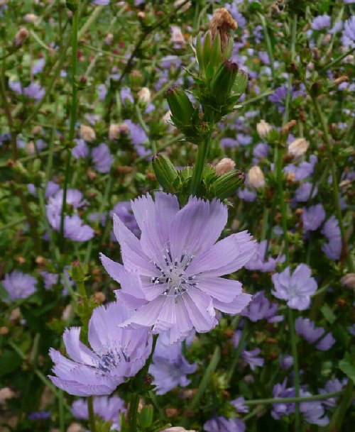 Vom Radicchio habe ich noch ganz viel Samen. Ich wollte einfach sehen, wie es aussieht, wenn da so ein blauer Riesenbusch im Beet steht.