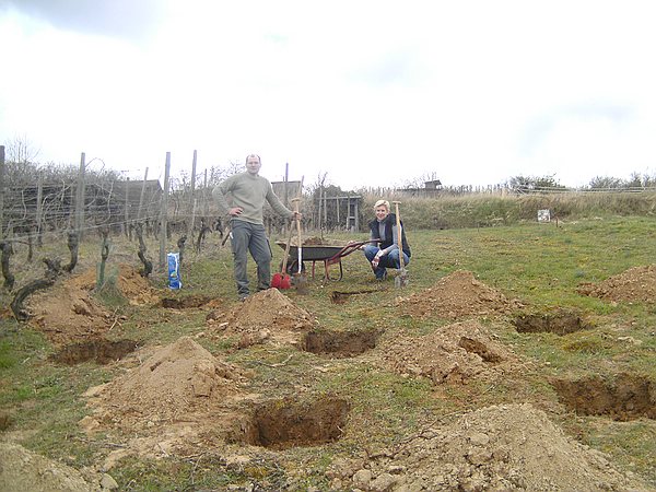 -So habe ich im Frühjahr ca 160 Löcher gegraben 80-80-60 cm,für ca 120-130 sorten.In 3 verschidenen warianten,3m auf 2m ,2.5m auf 2m, 2m auf 2m.