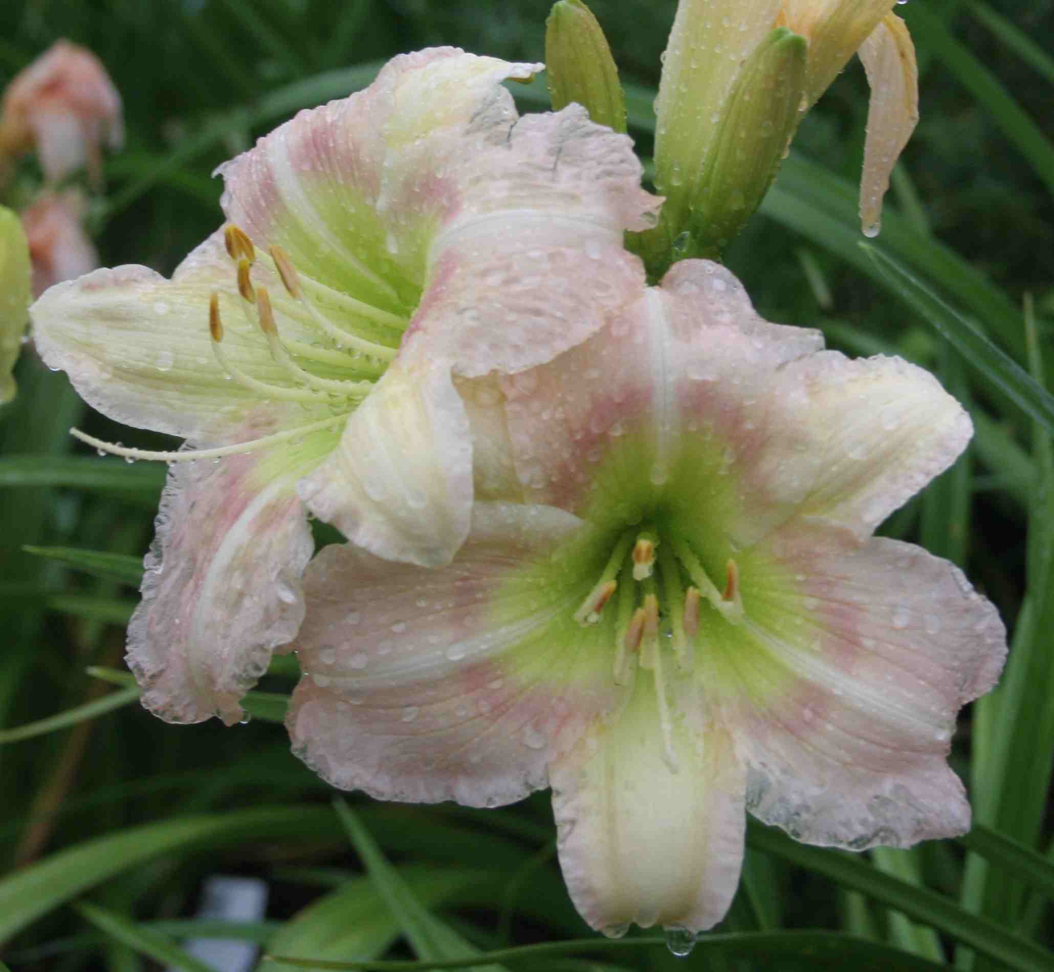Bei uns schüttet es seit Mitternacht wie aus Kübeln, und ausgerechnet heute sind viele neue Sämlingsblüten aufgegangen