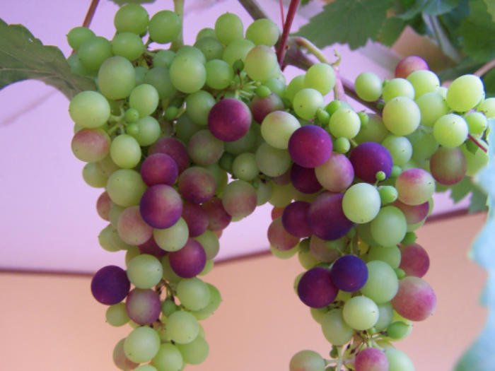 Hallo Trauben-freund,die Trauben waren dunkelblau - so weit ich mich erinnere. Jetzt werden die ersten schon rot bzw. blau. Hier ein Foto das ich gerade gemacht habe. Nero ist ja eine gute Sorte. Wäre nicht schlecht.