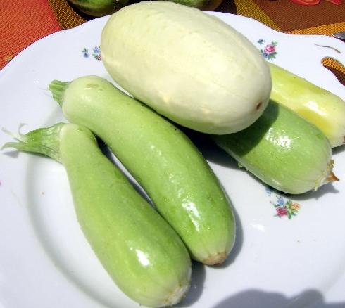 ;)Zucchini , die morgen eingefroren werden und nächste Woche gibt es die 1. Bohnen. Immer noch Pflücksalat, der Restsalat ist geschossen, auch die neu gesetzten Pflänzchen. Die Hühner freuen sich.