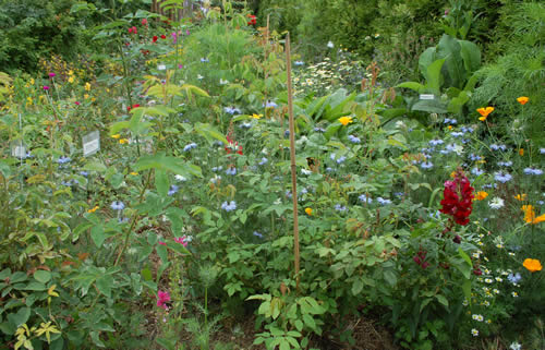 Die Jungfer im Grünen ist nun schon fast zur Plage geworden im Garten, aber zum Glück gut zu entfernen. So sieht es aber noch schön aus, wie ein Bach durchs Beet: