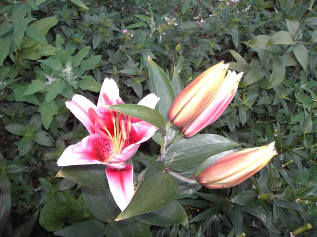 heut hat sich noch ne kleine überraschung für mich ergeben: eine längst vergessene pflanze, weil für 2 jahre nicht geblüht und nur relativ popelig vor sich hin gewachsen in einer kiste - und doch heuer auf 170 cm hochgeschossen mit schön grossen blüten, nicht jetzt "spektakulär", aber doch aufgrund ihrer erscheinung insgesamt auffällig: lilium wenshanense - absolut winterhart (in der kiste ungeschützt mehrmals unter -15°C erlebt), völlig unkompliziert.