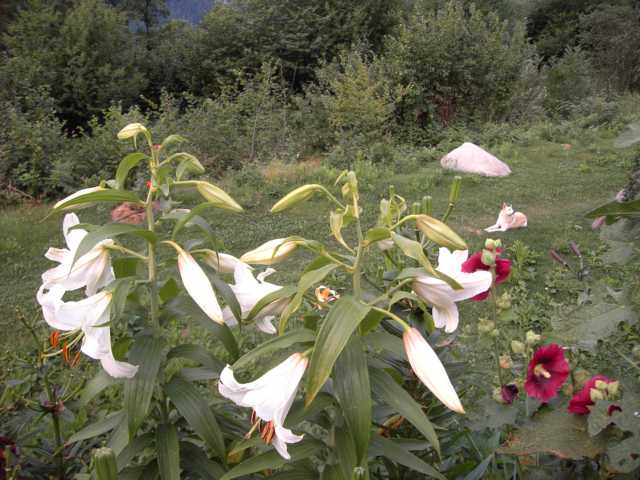 heut hat sich noch ne kleine überraschung für mich ergeben: eine längst vergessene pflanze, weil für 2 jahre nicht geblüht und nur relativ popelig vor sich hin gewachsen in einer kiste - und doch heuer auf 170 cm hochgeschossen mit schön grossen blüten, nicht jetzt "spektakulär", aber doch aufgrund ihrer erscheinung insgesamt auffällig: lilium wenshanense - absolut winterhart (in der kiste ungeschützt mehrmals unter -15°C erlebt), völlig unkompliziert.